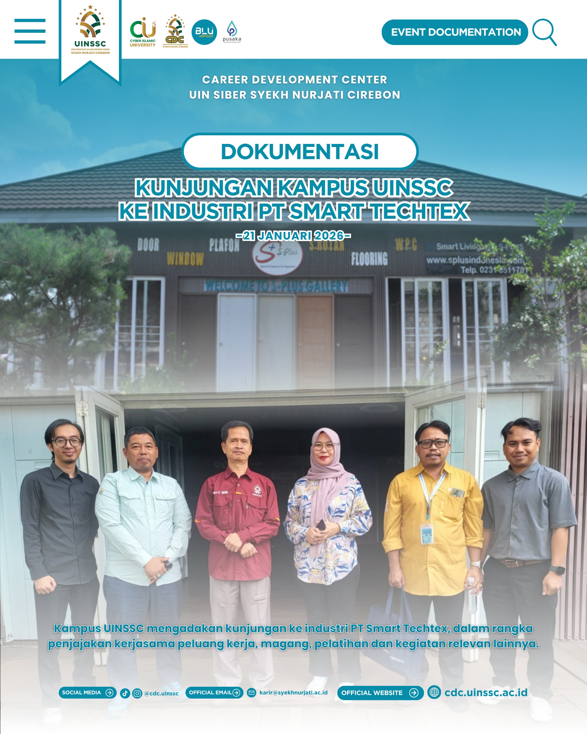Melalui kunjungan tersebut diharapkan kerjasama antara kampus UIN Siber Syekh Nurjati Cirebon dengan PT Smart Techtex dapat berlangsung dengan baik. Terima kasih kepada seluruh pihak yang telah berkontribusi dan terus berproses untuk menjadi lebih baik dalam lingkungan kerja.