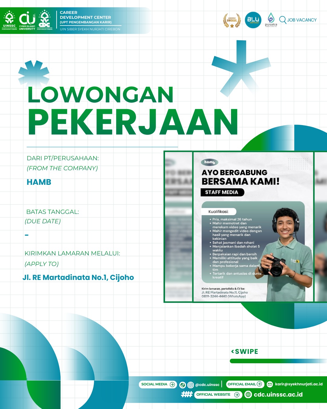 Punya passion di dunia kreatif & media? Ini waktu yang tepat untukmu! Kini HAMB membuka kesempatan untuk posisi bagi kamu yang kreatif, komunikatif, dan siap berkembang bersama tim profesional.