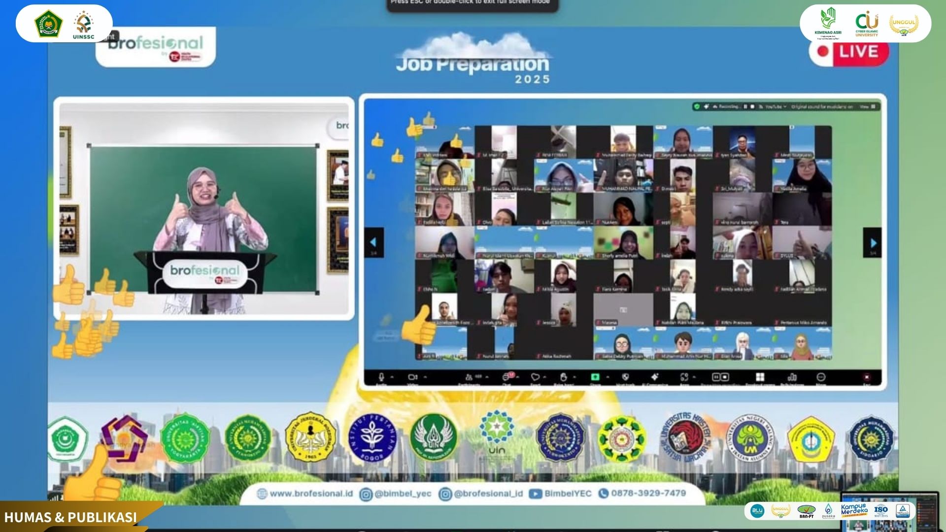 07 Juli 2025Pada 8 Juli 2025, Career Development Center (CDC) UIN Siber Syekh Nurjati Cirebon meluncurkan agenda perdana Job Preparation 2025, sebuah pelatihan karier daring melalui Zoom bagi mahasiswa aktif—khususnya semester akhir—dan alumni, yang diikuti dengan antusias ratusan peserta (UIN Siber News, CDC UIN Siber Syekh Nurjati Cirebon). Acara dibuka dengan sambutan apresiatif dari Kepala UPT CDC, Wahyono, M.Pd.I, yang menekankan pentingnya kesiapan lulusan dalam menghadapi dunia kerja (UIN Siber News). Materi utama disampaikan oleh Coach Kevin Dyo Pamungkas, M.Sc., yang memperkenalkan konsep KAKA (Kontributif, Amanah, Kolaboratif, Adaptif) dan membahas Top 10 Skills of 2025—dari berpikir analitis hingga kreativitas dan kemampuan teknologi—serta mengupas strategi penyusunan CV, proses seleksi kerja, dan cara menonjolkan diri di antara banyak pelamar (UIN Siber News, CDC UIN Siber Syekh Nurjati Cirebon). Program ini terbuka dan gratis, dilanjutkan dengan sesi pendalaman setiap Selasa dan Kamis malam dan dirancang sebagai bekal kompetensi penting untuk fresh graduate menuju karier yang lebih cerah dan terarah (UIN Siber News, CDC UIN Siber Syekh Nurjati Cirebon).