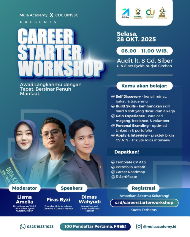 CAREER STARTER WORKSHOP Mula Academy x CDC UIN Siber Syekh Nurjati Cirebon "Awali Langkahmu dengan...