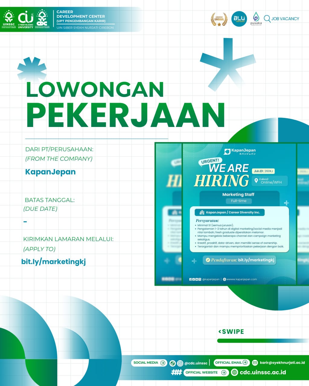 Kesempatan emas buat kamu yang tertarik di dunia digital & marketing! Kini, Perusahaan Kapan Jepan membuka peluang untukmu yang siap terjun langsung di dunia kerja.