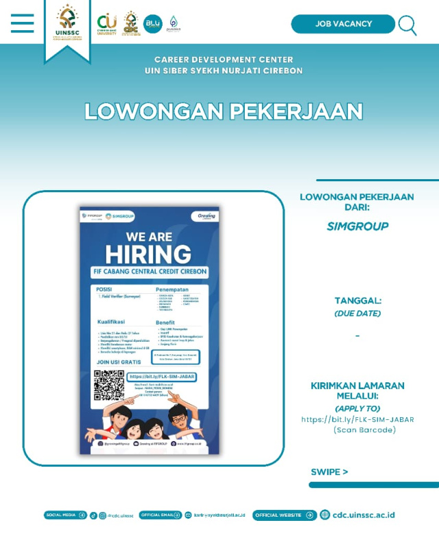 [CAREER DEVELOPMENT CENTERUIN SIBER SYEKH NURJATI CIREBON] WE ARE HIRING! SIMGROUP – FIFCabang Cen...