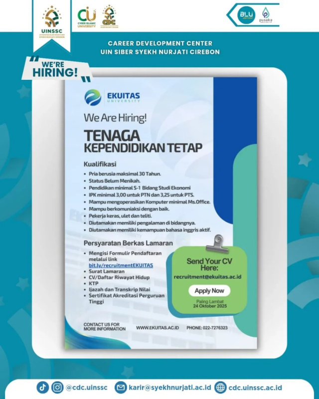 Lowongan Tenaga Kependidikan Tetap – Universitas Ekuitas Career Development Center (CDC) UIN Siber...