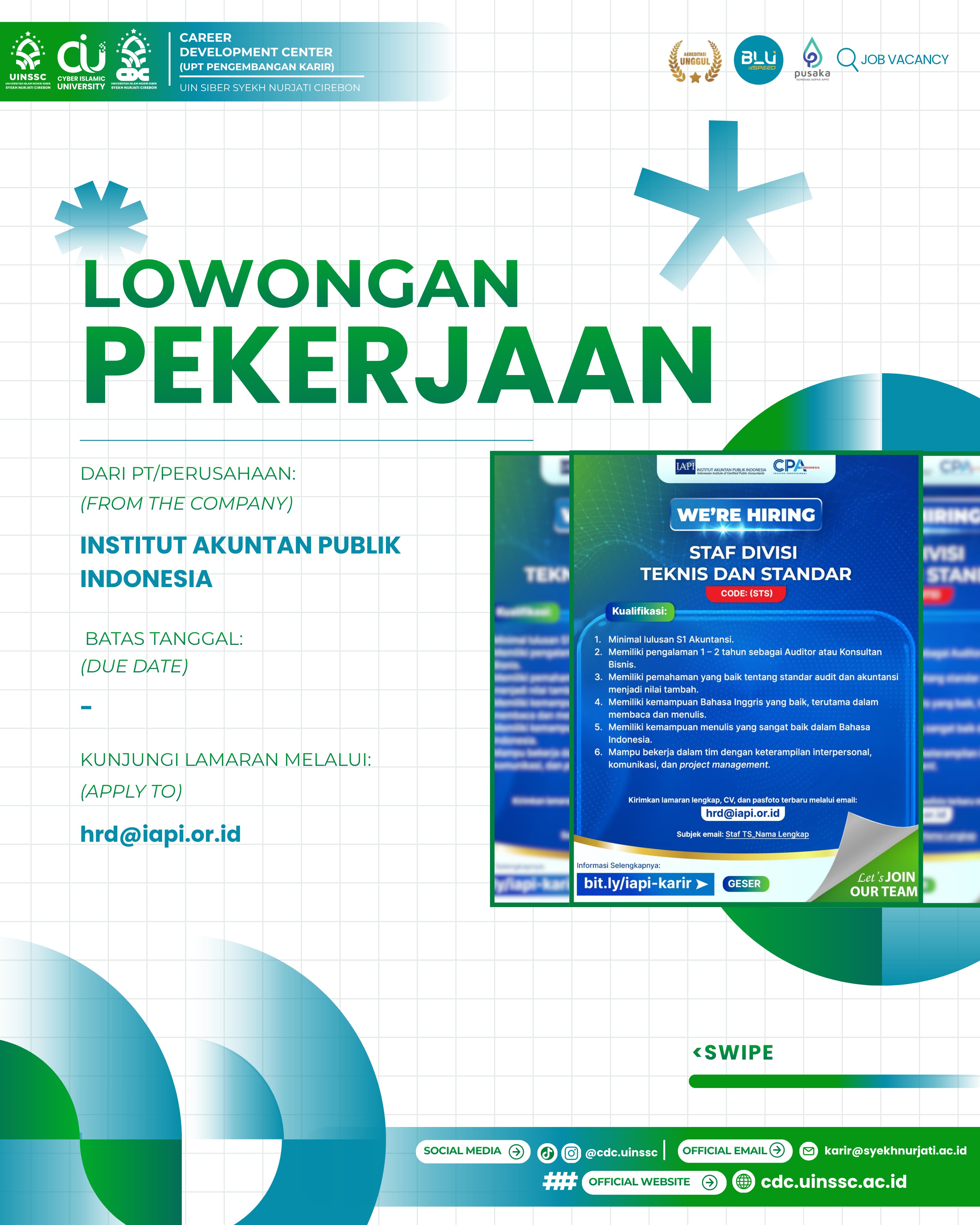 #UINSSC #LowonganKerja #Staffdivisi #cdcuinssc #IAPI