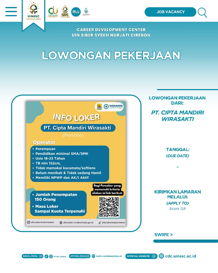 #LowonganKerja #KarirUINSSC #CDCUINSSC #JobVacancy #PTCiptaMandiriWirasakti