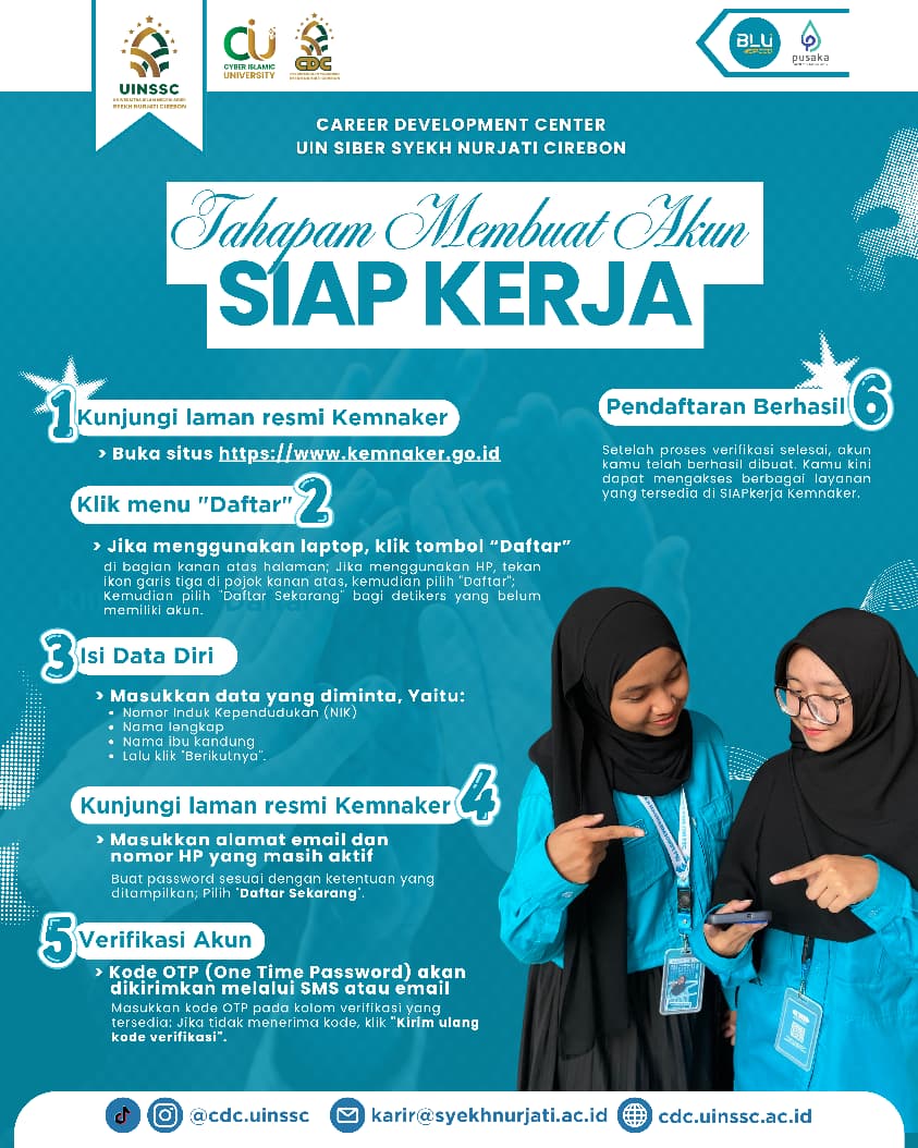 Cirebon – Career Development Center (CDC) UIN Siber Syekh Nurjati Cirebon terus berkomitmen mendampingi mahasiswa dalam mempersiapkan diri menuju dunia kerja. Salah satu langkah penting yang perlu dilakukan adalah memiliki akun SIAPKERJA Kemnaker, sebuah platform resmi Kementerian Ketenagakerjaan RI yang menyediakan berbagai layanan ketenagakerjaan dan informasi karier.