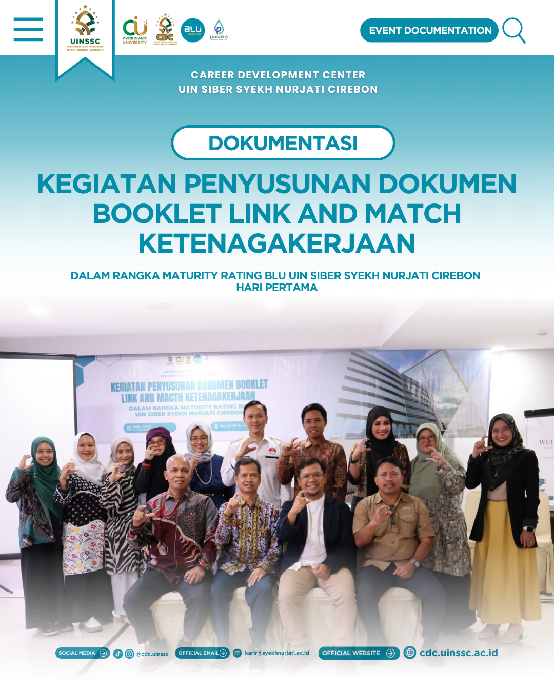 UIN Siber Cirebon — Dalam upaya memperkuat sinergi antara perguruan tinggi dan dunia kerja, Unit Pelaksana Teknis (UPT) Pengembangan Karir atau Career Development Center (CDC) UIN Siber Syekh Nurjati Cirebon menggelar Workshop Penyusunan Dokumen Booklet Link and Match Ketenagakerjaan . Kegiatan ini berlangsung selama dua hari, Rabu hingga Kamis (5–6/11/2025), bertempat di Grage Hotel Cirebon.