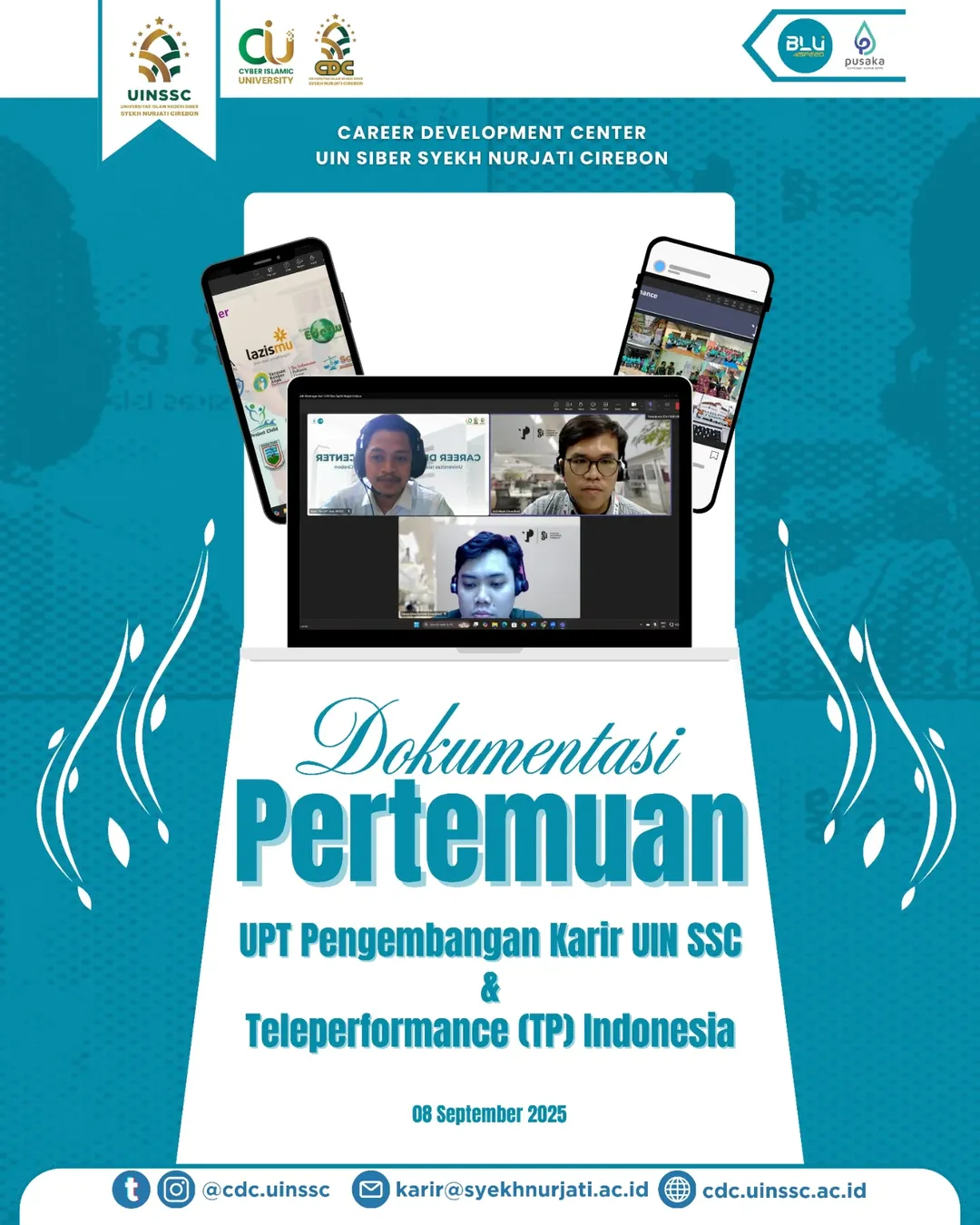 UPT Pengembangan Karir (Career Development Center) UIN Siber Syekh Nurjati Cirebon terus mendukung pengembangan kapasitas mahasiswa melalui berbagai kegiatan pelatihan dan webinar. Salah satunya adalah fasilitasi partisipasi mahasiswa dalam Webinar InnovAtion: AI yang Bantu, Kamu yang Maju! yang diselenggarakan pada Minggu, 14 September 2025, pukul 09.30–12.00 WITA secara daring melalui Zoom Meeting.