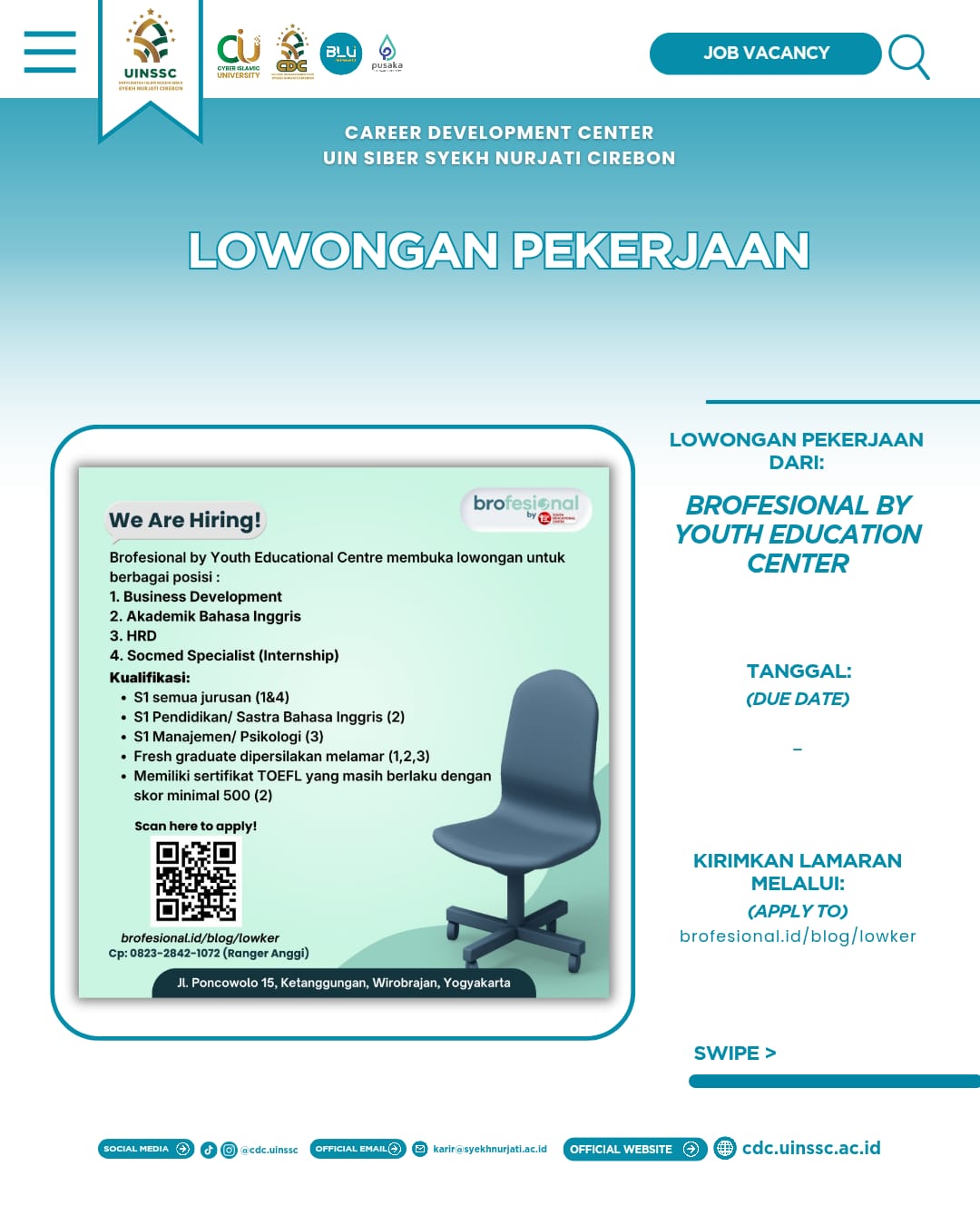 Brofesional by Youth Educational Centre kembali buka kesempatan bergabung untuk kamu yang ingin berkembang bersama Brofesional nih guys
