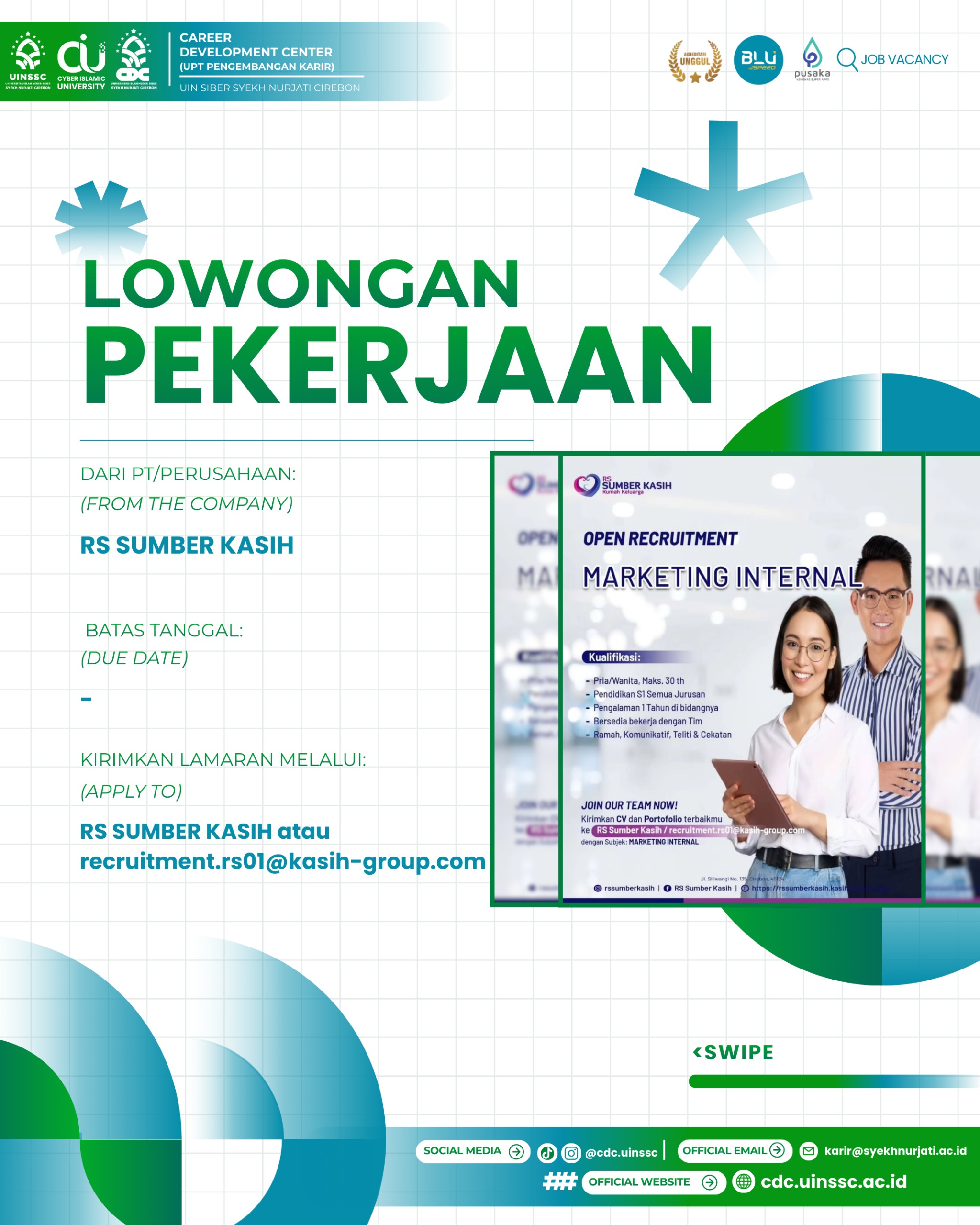 We Are Hiring Kesempatan Bergabung sebagai Marketing Internal di RS Sumber Kasih